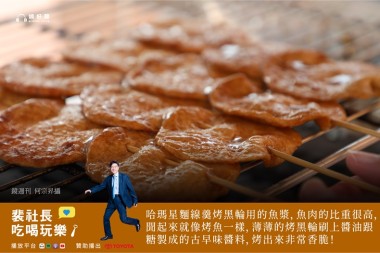 裴社長超愛魚漿料理,因此到高雄第一個目標就是直奔黑輪專賣店。在行家領路之下,第一站便是鑽進三民市場吃「廖家黑輪」!