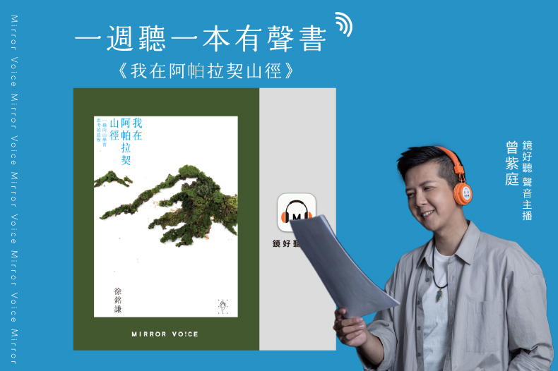 鏡好聽主播曾紫庭同樣熱愛自然,聆聽他用悠揚細膩的聲音描述阿帕拉契的樹木、河流與動物是一大享受。在勞動手作步道、砍木頭敲石塊的段落,紫庭則運用充滿律動感的輕快聲調讓我們宛如置身其中。期待透過這本有聲書,除了陪伴您進行一場耳朵旅行,更能帶著一顆對大自然溫柔的心,用雙腳走入山林。